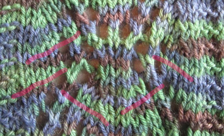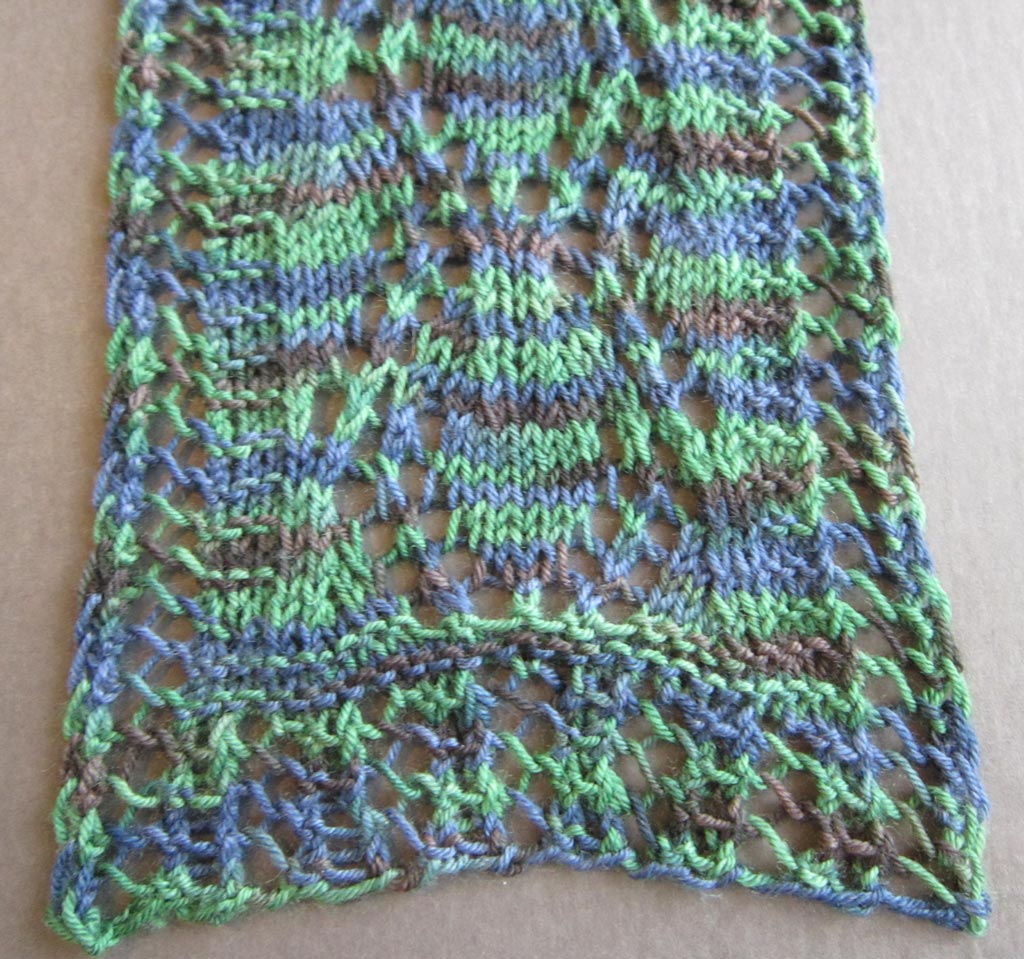 Herringbone Faggot is also entirely reversible. Thus, technically there is no RS or WS designation so far in the pattern instructions for the scarf.