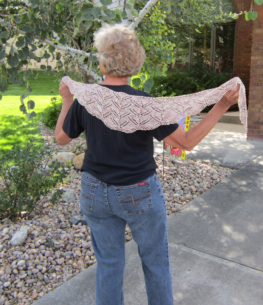 For those who participated (thank you!) in the KAL for Beaded Crescent Neck Lace that recently ended, you should now have a pretty good idea of the basic approach for bottom-up short row crescent shaping. You can use what you’ve learned as a jumping off point to start with other narrow edgings of your choice or to make in whatever size you want.