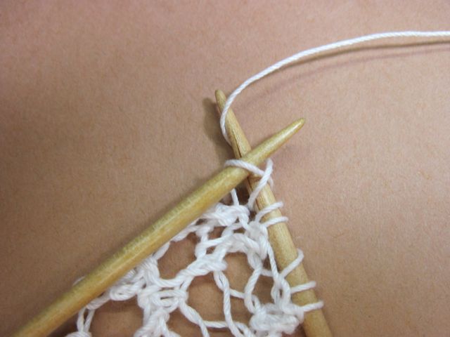 So far our 2 little bit-size monthly lace edging projects have not begun with a row that is slipped purlwise with yarn in front after casting (and intentionally, thus I didn’t need to get into this little detail yet). But that will be coming up. In the spirit of taking things one bit at a time, this is just one of those things to add to your growing bag of lace knitting know-how that I hope will help you become even more comfortable in understanding the nuances of loops of yarn./thread